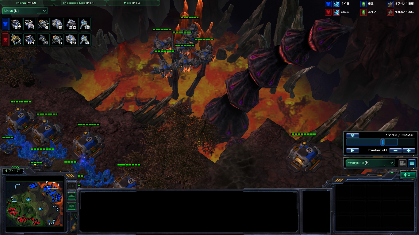 This game has not been discussed as much as it deserves. It may be because Thorzain lost this game eventually, which undermined his unique approach to the metagame. In my humble opinion, Thorzain lost the game partly because he lost his vikings at 22:00. This prevented him to attack MarineKing from the front by leap frogging his tanks.Eventually, Thorzain opted to drop in MarineKing’s main base which seemed to be the downfall of his amazing play.