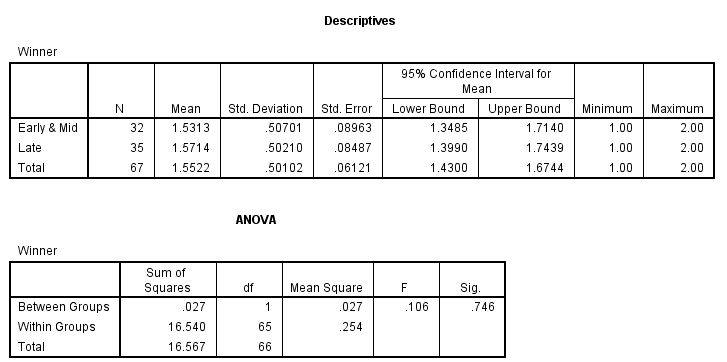 One major assumption of this study is that a player wins at the time frame when he has advantage. In other words, let say Terran has an advantage before 18th min and opponent may not concede at that point. The advantage will accumulate and eventually wins the Terran player the game after 20th min, which may affect the result of this study. However, based on the hypothesized statements by majority of the community that Protoss is stronger as the game moves into the later game, then probably there is a linear relationship to that. Both actual metric measurement and categorical measurement (early/mid/late) are used.