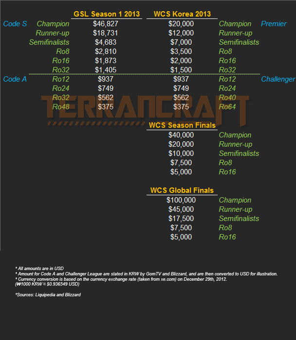 Here is a quick comparison between the prize distribution of GSL Season 1 and WCS Korea.