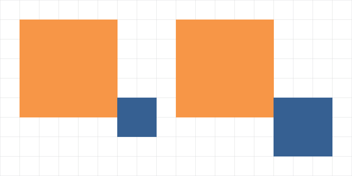 2×2 and 3×3 buildings work in the same way. One adjacent square is enough to form a solid wall.