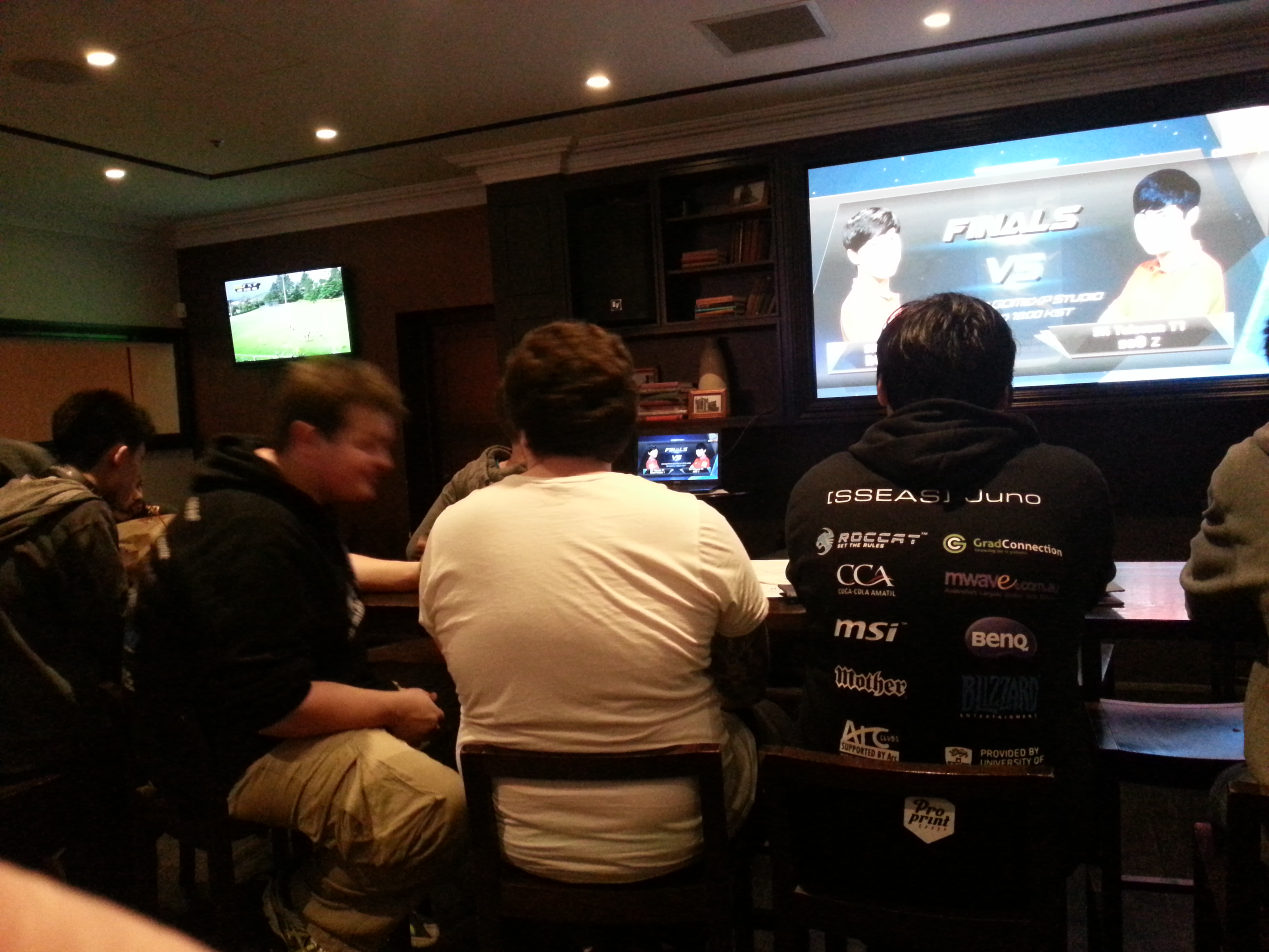 I brought two friends along. They were pretty impressed by the crowd, so was I. Despite the occasional technical difficulties, SCS did a good job. The crowd was obviously cheering for soO. I guess Australia is owned by Zerg.