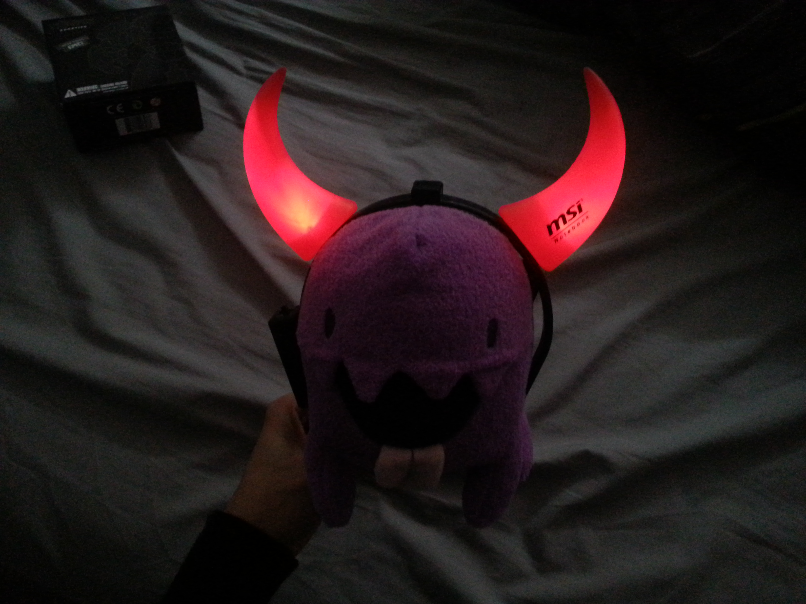 The red devil ears thing was sponsored by MSI and was given to the girls.