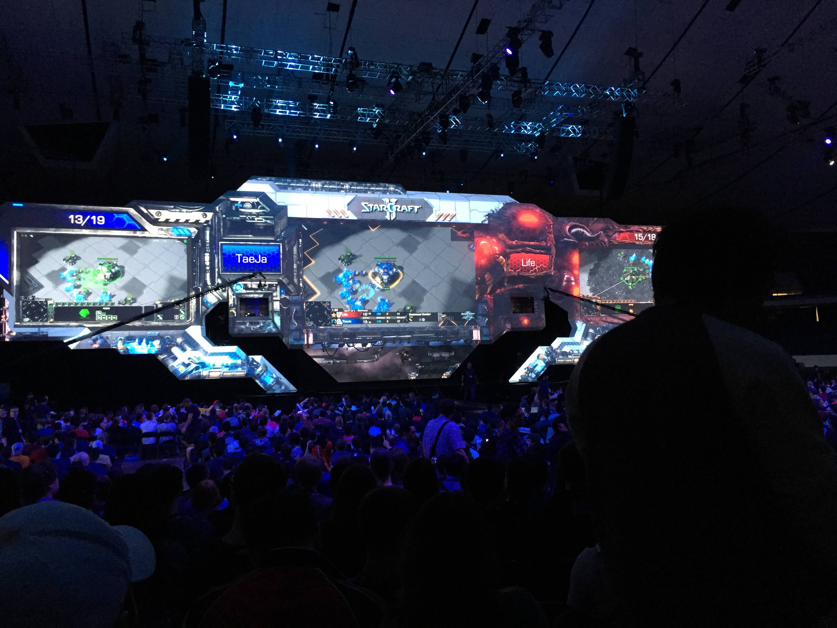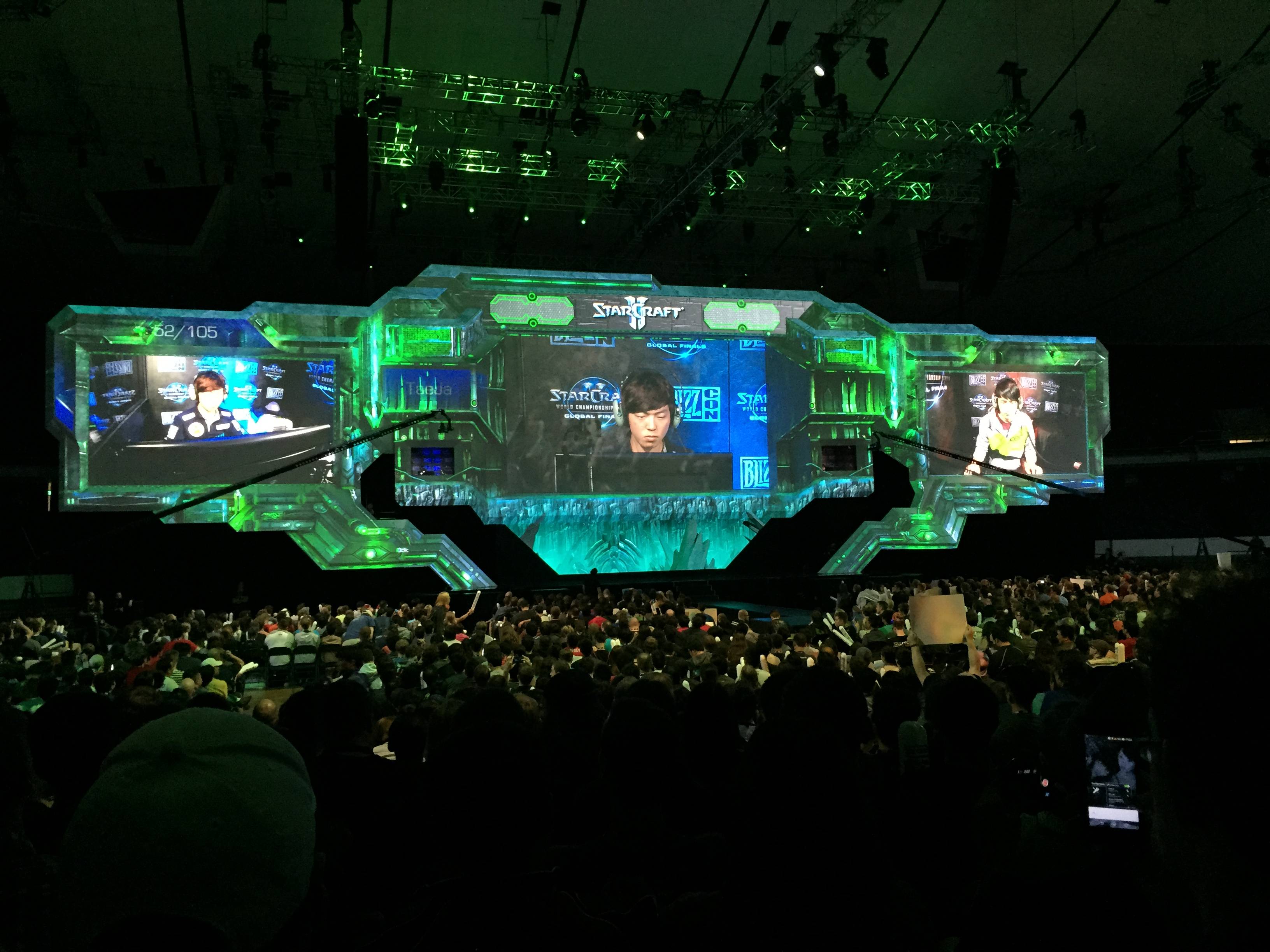 The stage was awesome. I was very impressed. The use of projectors to create different overlays for each race and map was brilliantly done.