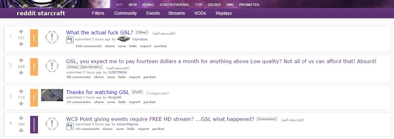 The GSL Code S Group B games were broadcast today. Non-subscribers of the GSL Twitch channel could only view the live stream at low quality. This is a problem.