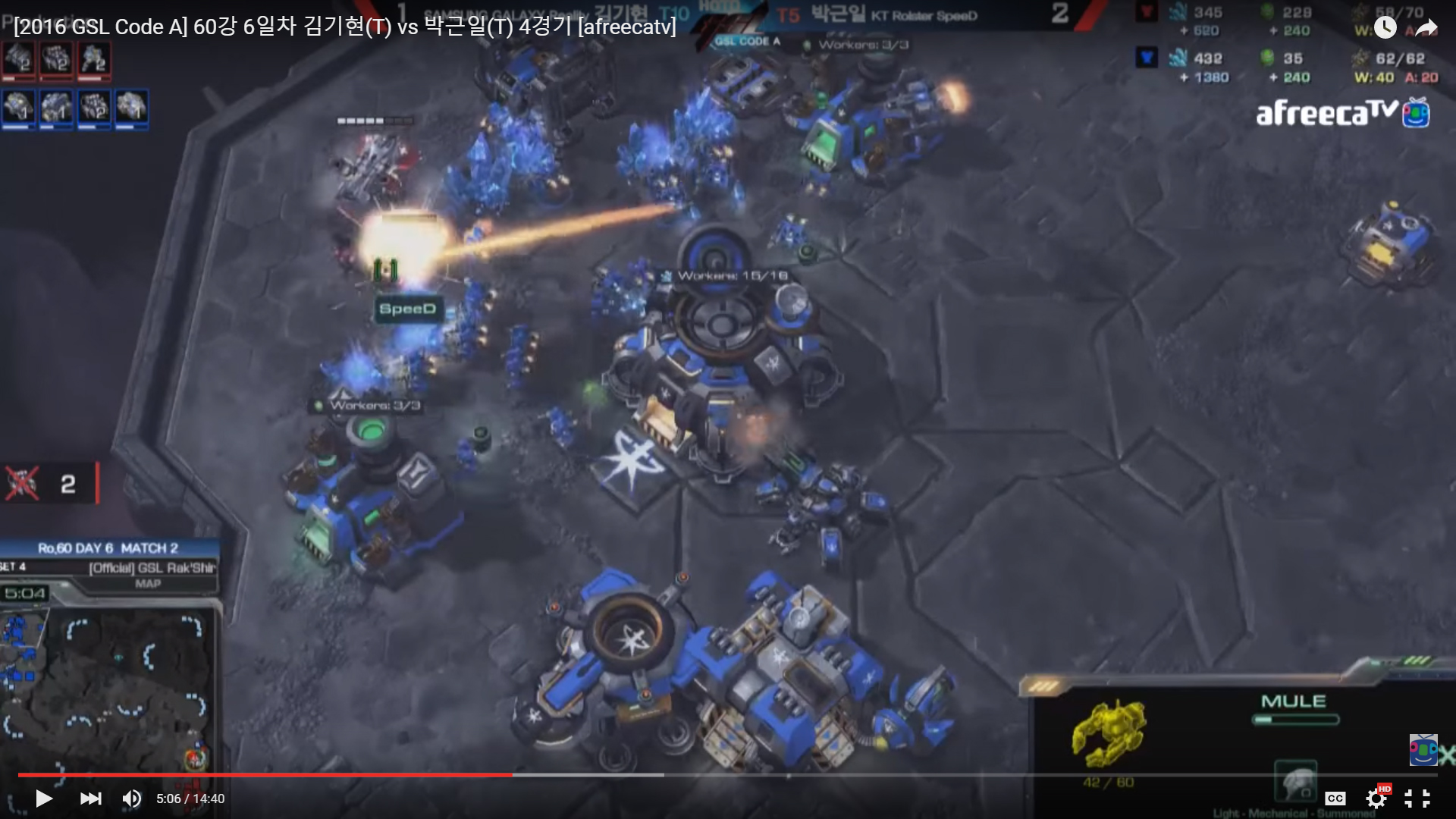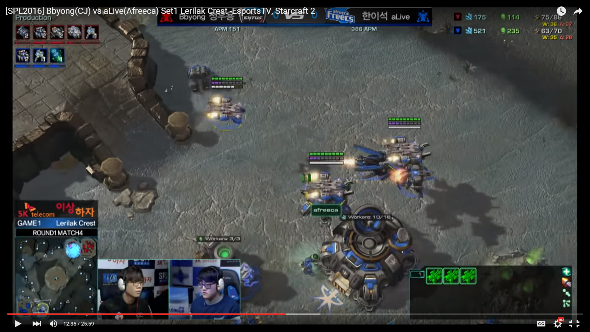 Another variation is the choice of first production cycle with Factory. Both SpeeD and Reality made a Widow Mine for a drop with Marine, before transiting into Tank production. The Widow Mine can be replaced with a Hellion for scouting purpose if you did not use a Reaper opening (watch the Bbyong’s choice in the vod below). In my opinion, Widow Mine is the best all-rounded choice for the first Factory production cycle, because of its early game impact. Is it possible to jump straight into Tank production? Yes, but the resource does not seem to line up as nicely, and Widow Mine is better against Banshee.