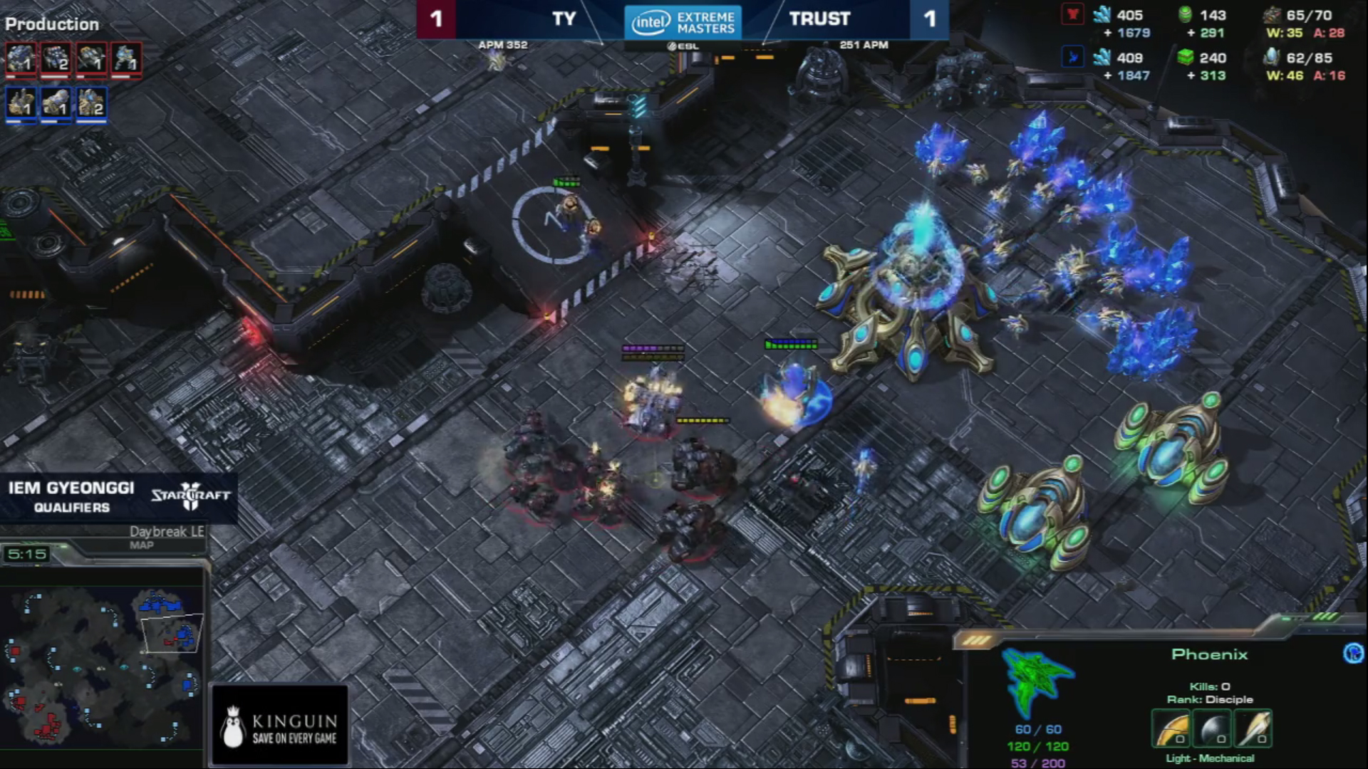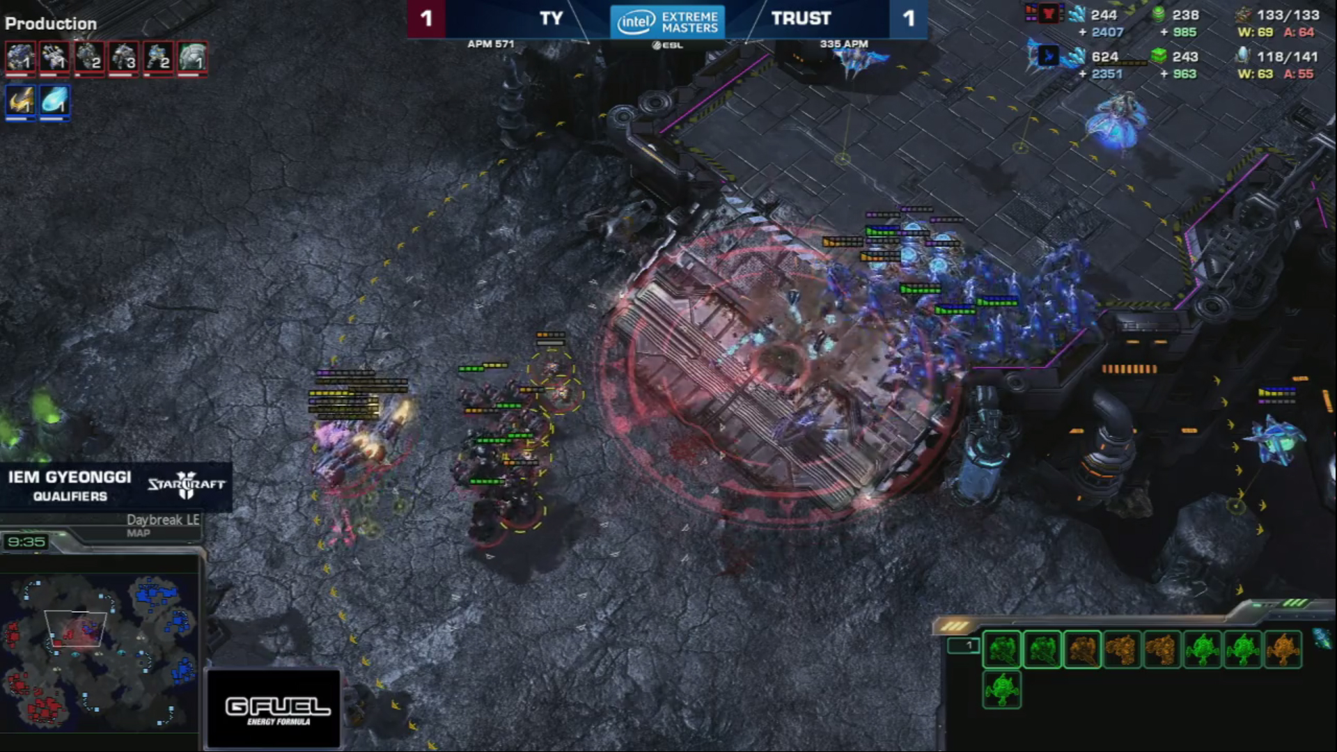 This does not mean that the previous Tank timing is no longer useful. In fact, INnoVation (vs. herO) was still using that in the IEM Gyeonggi qualifier. I initially thought that the difference could be due to the map, as Cyclone should be stronger on maps where the attacking location does not have a ramp. However, INnoVation was using Tank to attack the Protoss third on Vaani Station anyway, so the ramp should not be the main reason. Also, the preference of early third Command Centre versus standard additional Barracks should not matter. As mentioned earlier, the Cyclone version does not put down the second Barracks as early as the Tank version does, and TY put down the third Command Centre before additional Barracks when he used the Cyclone version. TY could have put down the second and third Barracks instead of the third Command Centre anyway, but it is clear that he favors an earlier third in TvP as you can see from his second game against Trust.