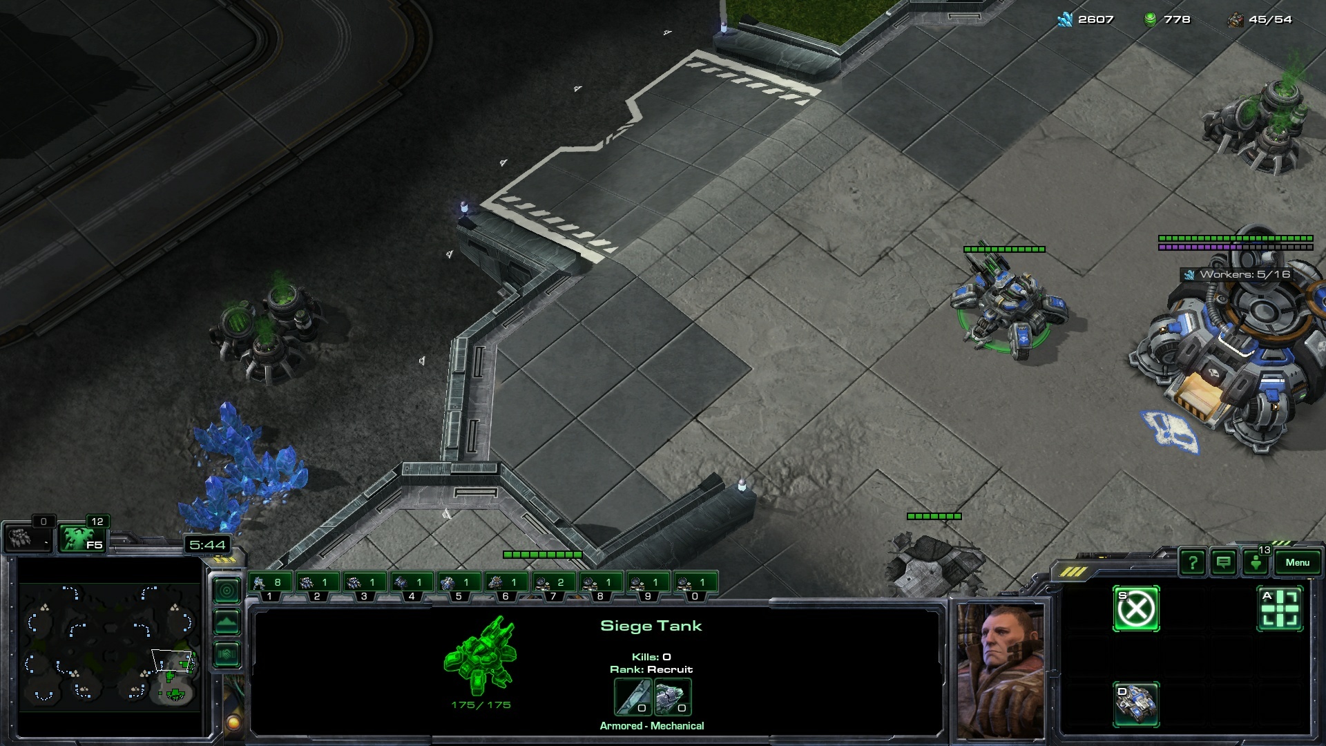 All the Siege Tanks in the video above are in range to shoot the Zergling, but only one fires due to the smart “no overkill” mechanics in Starcraft II. Without it, all the Tanks would have fired at the single Zergling, and hence, ten of the eleven Tanks would have wasted a shot to “overkill” an unit. Thus, Siege Tanks in Starcraft I are usually spaced out in order to prevent all Tanks to fire at one unit.
