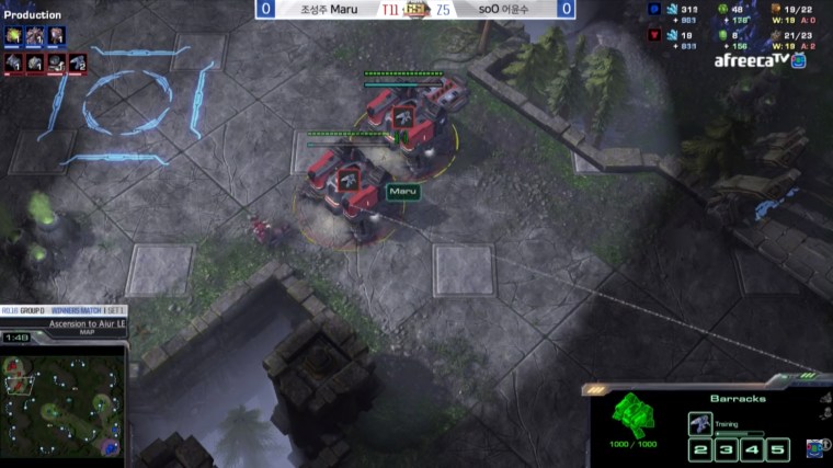 In the vod below (timestamped), soO managed to have a bunch of Zerglings out in the map without taking significant damage, and Maru immediately played awkwardly. Maru had to rally his Barracks behind his wall to defend the Zerglings, and also to prevent the new Reapers to get picked off while they are travelling across the map. Also, the main group of Reapers did not make any aggressive move by attacking the Zerg, as the Zerglings might flank from the back. If Terran lose the main group of Reapers to Zerglings, they are in a very bad position. Therefore, the Reaper movement decisions made should not be just about piling up damage, it is also necessary to sustain proper map control.