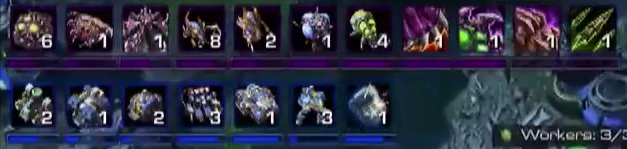 The role of ZBH is to allow Zerg to be as cost efficient as possible in the defensive mid game phase, and transition out to Hive tech. The upgrade choices are in line with this goal, such that only level one Missile Attack is upgraded. Zerg either start off with Missile Attack and Carapace +1/+1 then go back to Melee Attack and Carapace +1/+2, or start off with Melee Attack and Carapace +1/+1 then squeeze in level one Missile Attack before going back level two Melee Attack. No matter which path Zerg take, they still converge back to level two Carapace, level one Missile Attack, and level one Melee Attack in the mid game. This set up has been working well for Zerg. The three production screen shot images below were taken from the same game. The first one shows a normal Melee +1/+1 upgrade, the second one shows a switch to Missile Attack upgrade while Carapace continues to level up, and then the third one shows Zerg go back to Melee upgrade. In the vod below, Zerg did not get level one Missile Attack, and the trade just did not go well.
