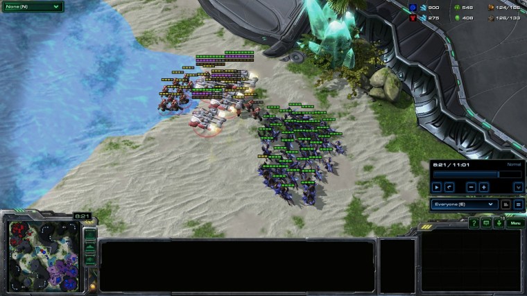 Thirdly, the lighting system in SC2 has a unintended interaction with vertex of polygon meshes in some units, producing blank pixels around them ( most visible in zerg units ) that add on to the visual clutter. You can see that by zooming in on a zergling on extreme graphics. Along with that, the game is poorly optimized for current hardware. Bottom line of this is, running on settings other than lowest for multiplayer is a setback and silly.