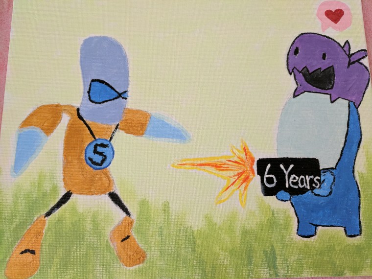 A nice touch on the oil painting. “Six years” eliminate “five”. She said she’s the Zergling on the head.