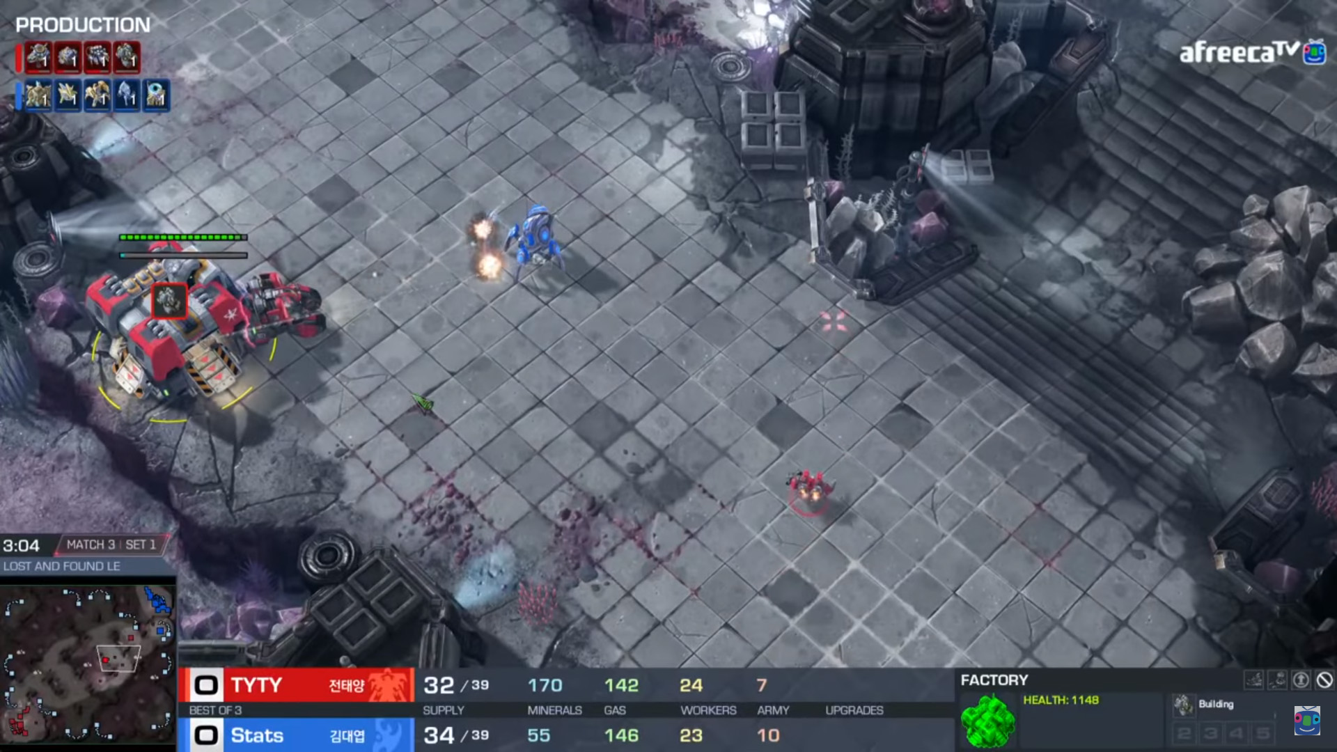 Stats found the proxy Factory and destroyed the Reactor just before the two Cyclones were out. This is the worst possible scenario for this build. TY had committed enough to the two Cyclones that he did not have other things. The attack had no chance to work with one Cyclone. Stats then could make more units to counter attack, because TY would not be able to pin Protoss in base. The game could easily end with a counter attack.