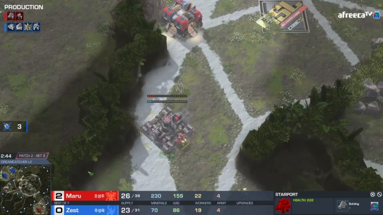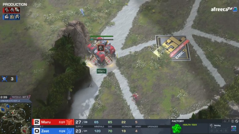 Proxy actually involves a high degree of risk. When scouted early by the opponent, Terran may not even complete the building and this can easily end the game. In the example mentioned earlier, TY’s Reactor Cyclone cannot be executed because the Reactor was found and destroyed by Stats. In the below vod, Zest found Maru’s proxy Barracks, and Maru had no choice but to cancel it. Cancelling your first Barracks is a huge deficit, and the fact that opponent knows you just started your Barracks again made it a lot worse.