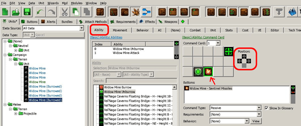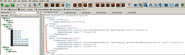 Now let’s deal with the Widow mine buttons! Go back to View=>Wizard view, search for VoidMulti widow mine. There are 2 units model to deal with: widow mine and burrowed widow mines, because game data is built in this way.