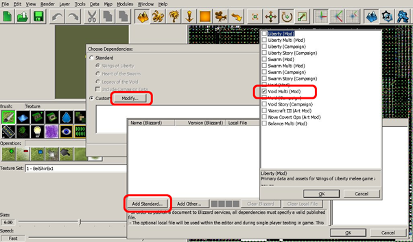 This is a list of all Standard Game Data to use as dependency. Void Multi (Mod) seems to be current live Multiplayer and Balance Multi (Mod) the current setup for Versus/Testing ladder games. The picture below shows the extended .SC2Mod tree. Here are the dependencies: Swarm includes Liberty, Void includes Swarm and dependencies , and Void Multi includes Void and dependencies. Our Mod will include VoidMulti (Mod) and dependencies.